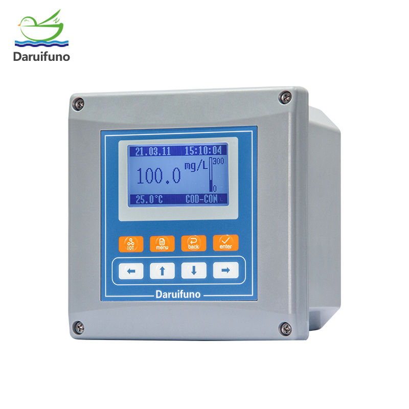 Daruifuno's online COD controller has two SPST relays for control and two 4-20mA current outputs for control or data output. The controller also supports Modbus protocol if RS485 is available. They are compatible with all Daruifuno digital sensors and can display COD, TOC, turbidity, BOD parameters.