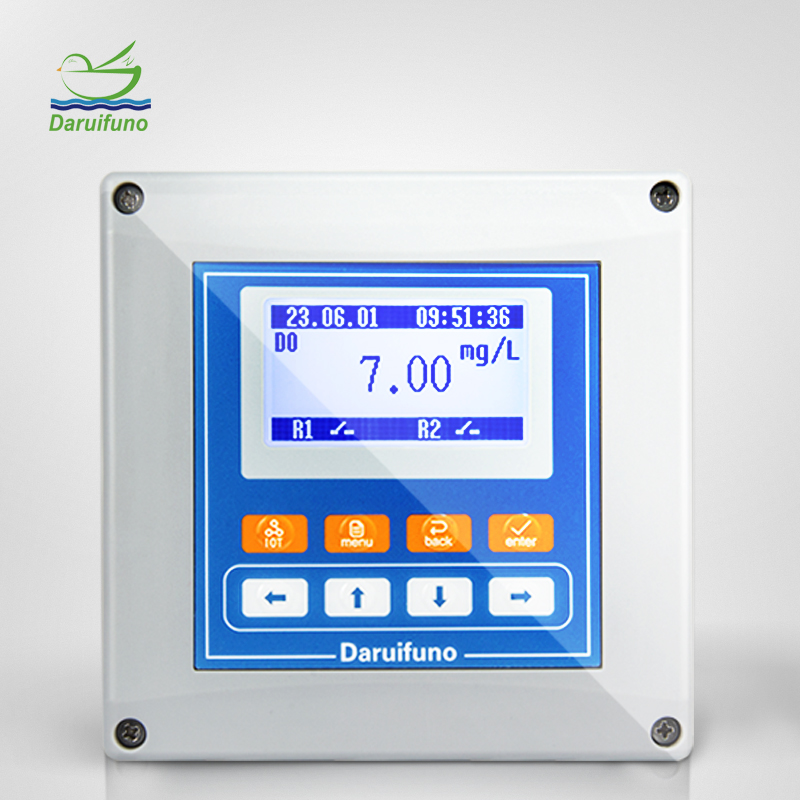 Dissolved oxygen refers to the amount of oxygen dissolved in water, expressed in milligrams of oxygen per liter of water (mg/L). Some organic compounds undergo biodegradation under the action of aerobic bacteria, which consumes dissolved oxygen in the water. If the dissolved oxygen is not replenished in time, anaerobic bacteria in the water body will multiply quickly, causing the water body to turn black and smelly. In industrial wastewater supervision, the dissolved oxygen Water Quality Analyzer provides real-time monitoring and early warning functions for the industrial wastewater treatment process. By monitoring the dissolved oxygen content in industrial wastewater, the effect of wastewater treatment can be reflected in a timely manner, abnormal situations can be discovered, and wastewater treatment measures can be adjusted in a timely manner to ensure the stability of wastewater treatment efficiency and treatment effects. The DUC2-DO online Dissolved Oxygen Controller developed and produced by Daruifuno can be used with a digital Fluorescence Dissolved Oxygen Sensor to achieve real-time continuous monitoring of the dissolved oxygen value of water quality. The controller is equipped with 2 settable SPST relays and 2 channels of 4-20mA current, which can be connected to aeration equipment to accurately control the dissolved oxygen value of wastewater. The wastewater dissolved oxygen quality monitor plays a very important role in industrial wastewater supervision. It can improve the efficiency of wastewater treatment and protect the environment and people's health.