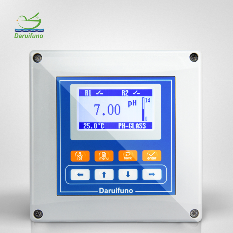 APX2-C1 online pH controller has two SPST settable relays. The user first sets the required pH value range, that is, the high and low alarm values, connects the dosing pump to add the liquid, and the PH Sensor detects the pH of the water quality, and Displayed on the pH controller. The controller automatically compares the measured value with the set value. When the alarm value is reached, the relay will be automatically turned on to control the dosing pump to add medicine, adjust the pH value of the water sample, and control it within the target range. Compared with Daruifuno's APX1 series controller, the APX2 series pH/ORP controller has a larger appearance. In addition to being able to be installed in a panel, it also supports wall-mounted, pipe and other installation methods.